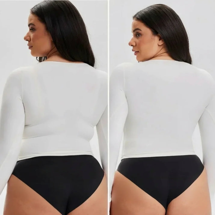 - Diseño Sin Costuras que alisa por completo tu espalda y elimina los "rollitos malditos".